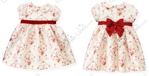 Celebrate in luxurious style with our beautiful silk duppioni rose floral dress. Lavishly embellished with peter-pan collar and puffed sleeves. Contrast sash with bow in back finishes the lovely look. Inside tulle layer with full lining provides exceptional comfort and extra flounce. Coordinating bloomer completes the dressy ensemble. Buttons in back assist in dressing.