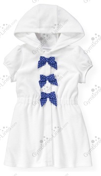 Sweet with dot grosgrain ribbon bows, our soft cotton blend terry hooded swim cover-up offers a fashionable look. Snaps in front assist with dressing.