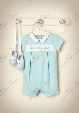 Vintage-inspired fashion is presented on our luxuriously soft cotton interlock pleated one-piece. Embellished with whale knit appliqués in front, piped trim and back pocket for sweet style. Snaps in back and underneath assist with dressing. Fits sizes preemie to 12-18 months.