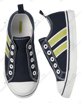 Bright stripes add cool detail to our comfy canvas sneaker. Fun laceless design completes his casual everyday looks.