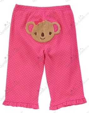 Smile baby koala! Soft dot knit pant features ruffle cuffs and a cute velour koala face in back.