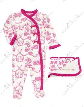 One Piece One-Piece 1 Piece 1-Piece Kimono Wrap Bow Ruffle Trim Floral Flower Toile Shirred Footed Footie Sleepwear Pajamas Sleeper Gymmie Gymmies Preemie