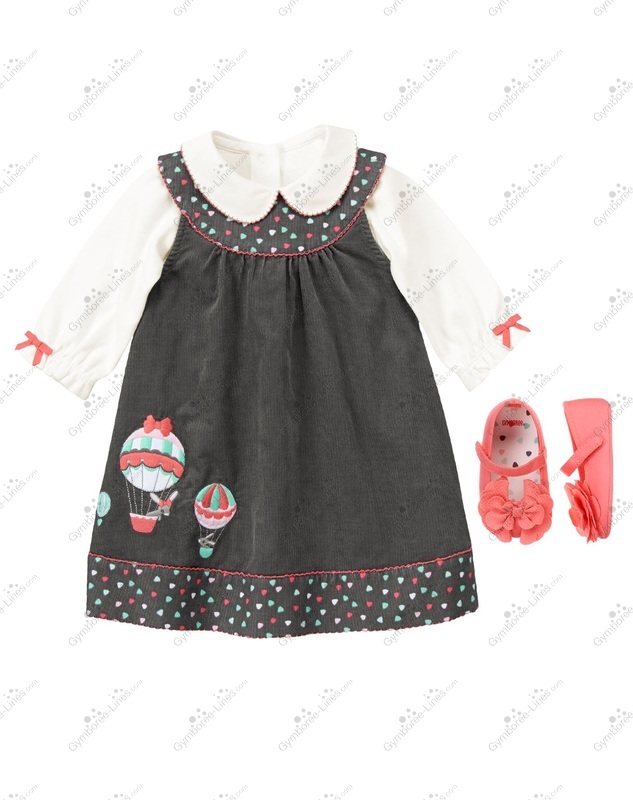 Dress Sleeveless Picot Trim Triangle Triangles Hot Air Balloon Bunny Rabbit Embroidered Applique Snap back Shirred Yoke Corduroy