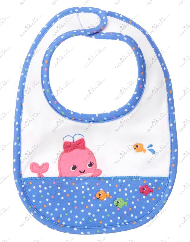 A cute whale bib for snack time! Sweet design features embroidery, poplin appliqués, grosgrain ribbon bow and dot trim for playful fun. Touch-close fastener offers a comfortable and secure fit.