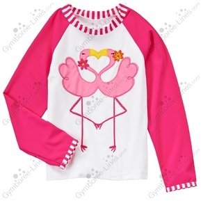 Flamingo appliqués make our comfy rash guard extra cute Long sleeve design offers UPF and UVB sun protection. Matching bottoms are fully lined.