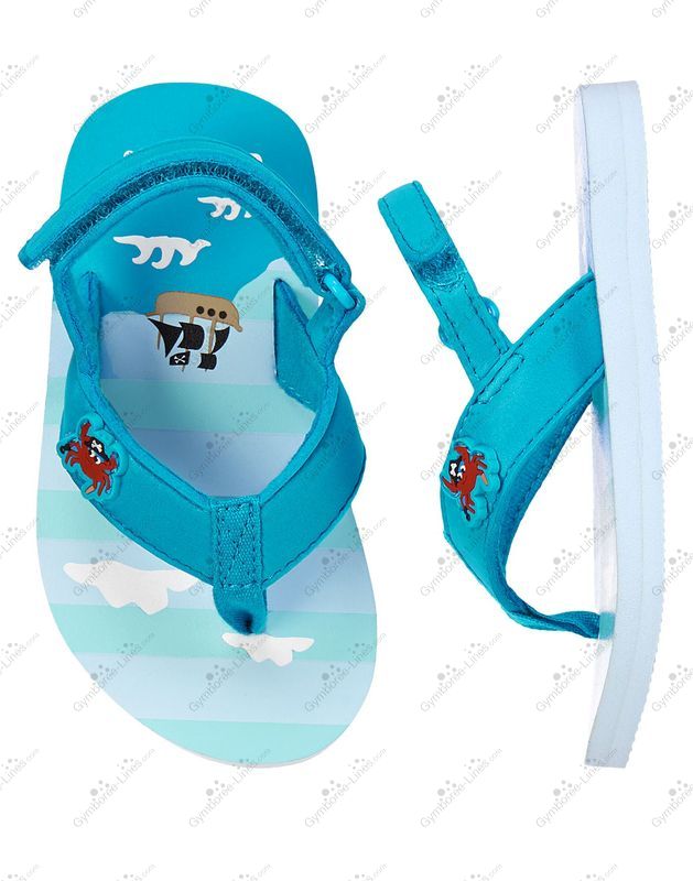 Your little sailor is ready for land or sea in our pirate flip flops with cute crab detail. Lined straps and easy touch close fastener make tour sandal a beachy favorite.