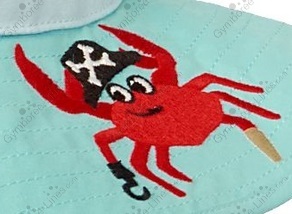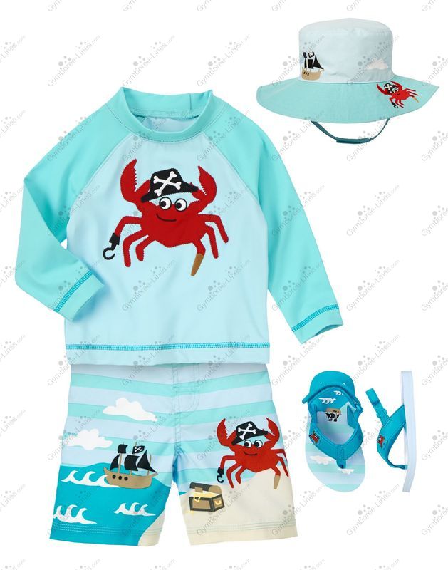 Your little one adds more than a pinch of fun to any water play day in our pirate crab outfit. Rash guard and matching swim trunks are a seaworthy pair. Just add matching crab hat and sandals.