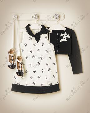 In textured stripe cotton dobby, our bow printed dress offers sweet sophistication. Finished with contrast trim and bow.
