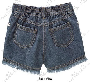 Embroidered hula girls with thread skirts tell a sweet short story on our frayed denim shorts. Jean fashion includes darker wash and five-pocket styling.