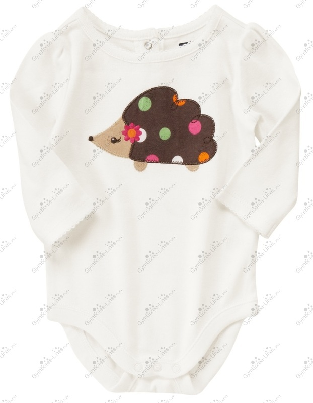 Top Shirt Tee Long Sleeve Snap Back Applique Embroidered Hedgehog Porcupine Polka Dot Dotted Dot Flower Picot Trim Onesie Bodysuit
